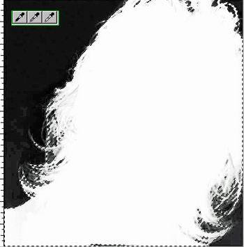 3.用魔棒工具选取脸部黑色,填充白色,打开"调整色阶"对话框,用黑色吸管单击背景,白色吸管点击脸部剩余的灰色,最后用橡皮擦调整,将通道载入选区。