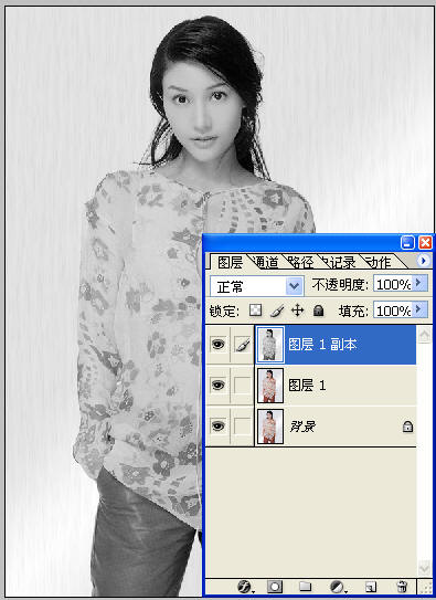 打开原图复制两层(按Ctrl J),将最上面的一层用“Shift Ctrl U”快捷键去色。