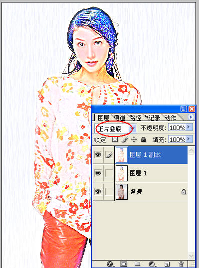 按Ctrl I反相,调整图层模式: