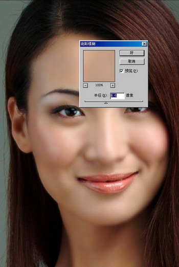 8.在上层皮肤上,用 特殊模糊 去斑,用 高斯模糊 柔化