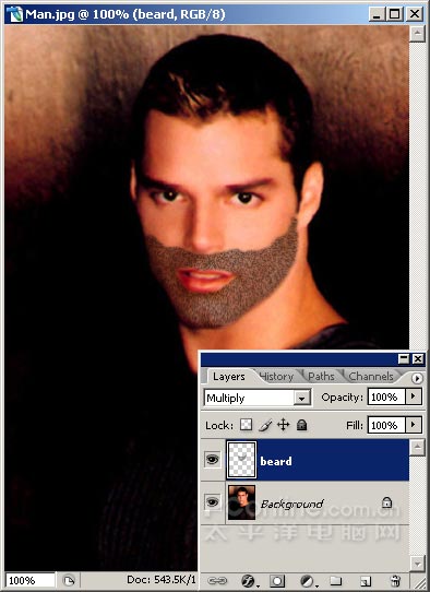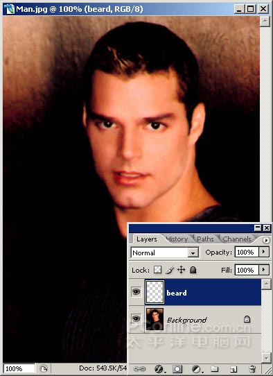 本例将告诉你如何在男性肖像照片的面部添加“数码胡须”,更显男性的阳刚气概。实现方法非常的简单,并且效果可以根据需要随意的调整。如果你想让自己的肖像照片更有男人味道,不妨试试这个方法。当然,你也可以拿朋友的照片来涂沫一通,捉弄娱乐他(甚至是她)一番。