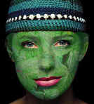 10 在“paths (路径)”面板中按下【Ctrl】键的同时单击“Work Path"路径名,得到脸部的选择区域。在“Layers (惕层)”面板中单击两个树叶图层左侧的眼睛图标赐,显示树叶图层。