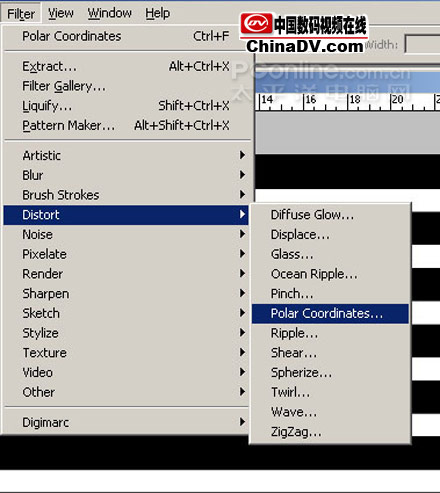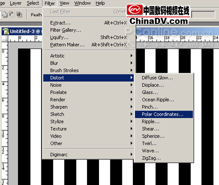 3.选择滤镜中的变形命令的极坐标命令。(图3)