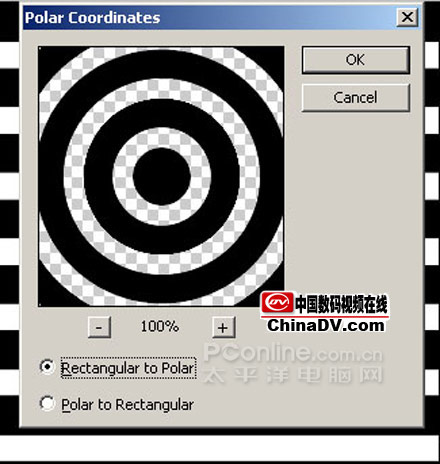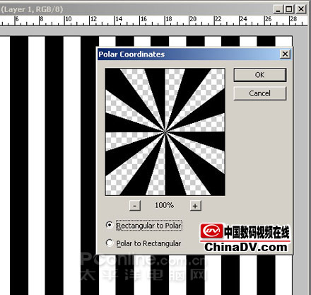 8.选择滤镜中的变形命令的极坐标命令。(图8)
