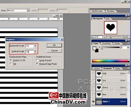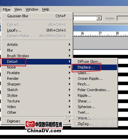 17.然后执行distort变形滤镜中的displace位移滤镜。(图17)