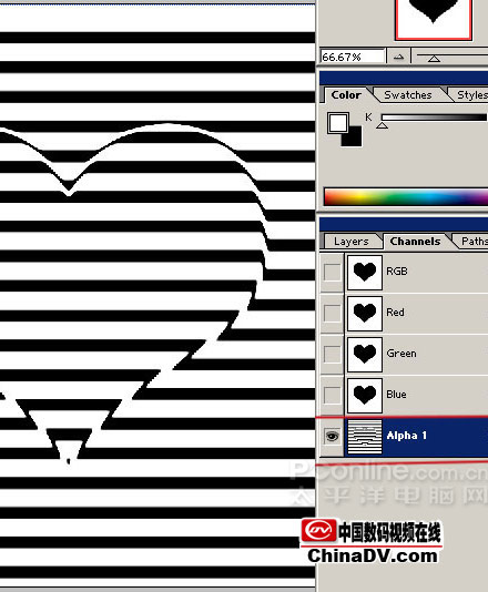 15.通道中新建一个通道,用白道填充(方法可自己处理,笔者用的是先填充一个白道,然后按住ctrl alt 向下的箭头,松开alt再敲若干次,形成一定节奏,瞬间就可以!)(图15)