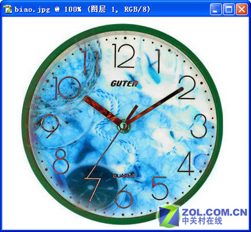 大家是否发现了,有一个问题:时针不见了。因为这个图把它遮住了。而且图像也和背景颜色不太协调,太过鲜亮。