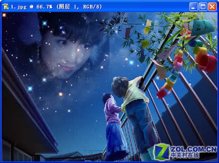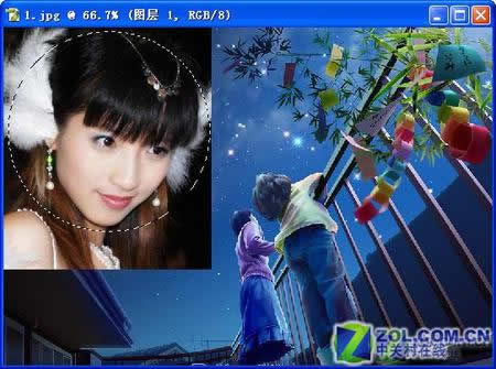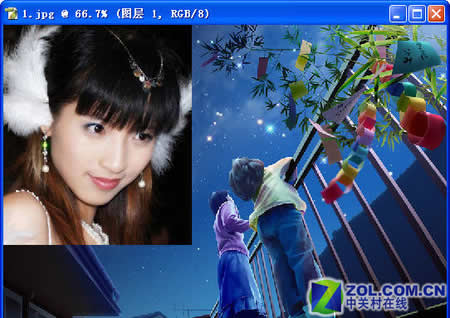 单击图2所示的图片文档标题栏将其选中,并复制粘贴到图1中,利用移动工具调整图片位置,得到(如图3)所示的效果。