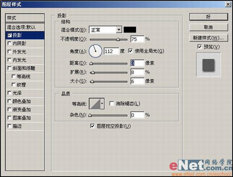 18. 按住Ctrl+X剪切圆环,然后按住Ctrl+V粘贴剪切的圆环。单击 调板的 按钮,在弹出菜单中选择 打开 对话框,从中设置投影选项如图18所示。
