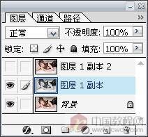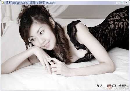 1.打开图片,按Ctrl J两次,复制两层,然后隐藏副本2。选中副本1,按Ctrl Shift U,去色。