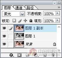 2.选中副本2,并把混合模式设为柔光。