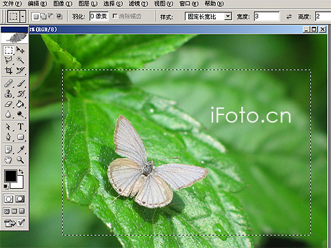 (1)打开要处理的照片,用选区工具或者裁切工具框选你要保留的画面部份,裁切。