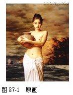 不知读者是否对谢楚余名画《陶》中那个拿着陶礶的女孩仍记忆犹新呢?本实例为大家介绍如何将这幅名画的女孩换成自己,让自己也能过过名画瘾,原画如图 87-1 所示。通过一定的操作将画中的女孩变成自己,如图 87-2 所示。