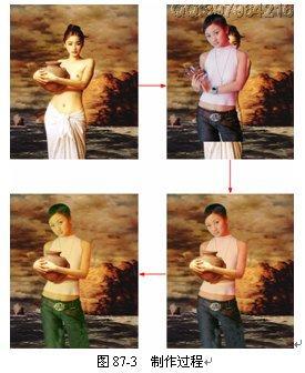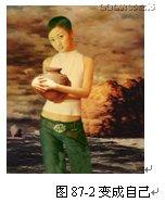(22)完成操作。经过上面各个步骤,终于完成了将拿陶礶的女孩换成自己的目的,最终效果如图 87-24 所示。