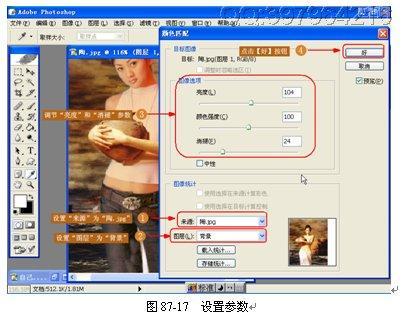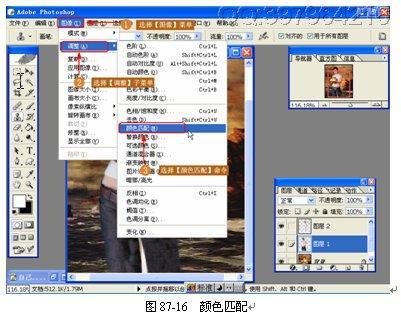 (14)匹配颜色。皮肤颜色与原画相差比较多,使用【匹配颜色】命令可以使颜色向原画逼近,如图 87-16 所示。