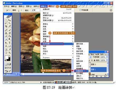 (17)绘画涂抹。为了使得图片能够给人一种画出来的感觉,使用【绘画涂抹】滤镜来修改图片,如图 87-19 所示。