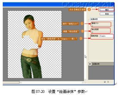 (18)设置“绘画涂抹”参数。分别设置好“绘画涂抹”的“画笔大小”、“锐化程度”、和“画笔类型”,如图 87-20 所示。