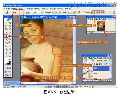 (20)修整边缘。由于原照片的原因,人物画像周围出现一些杂边,使用【仿制图章工具】将杂边去除,如图 87-22 所示。