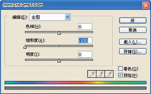 再次选择菜单“图层—新调整图层—色相/饱和度”,按默认值确定。(图9)