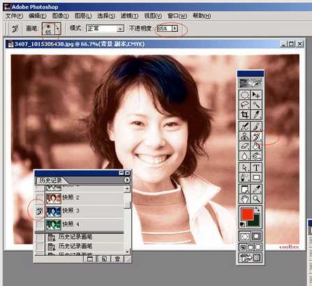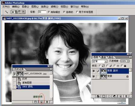巧妙利用Photoshop历史记录中的“快照”、CMYK模式、历史画笔可以为黑白照片轻松迅速地上色。