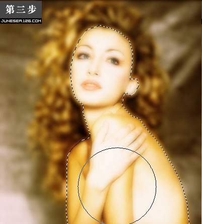 保持模糊图层的不透明度为100%,用橡皮擦(OPACITY=20%)按照需要把人的皮肤部分的图像擦淡,边缘区域则不动.如果想要较淡的效果,可把整个图层的OPACITY值调低,或用像皮擦多擦淡一些,同时可以试试各种图层相混效果。