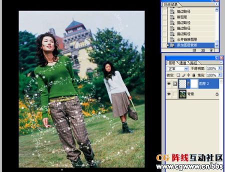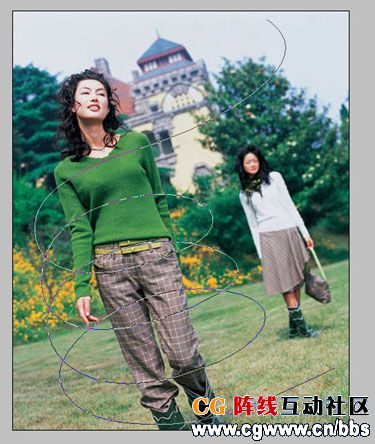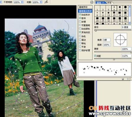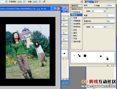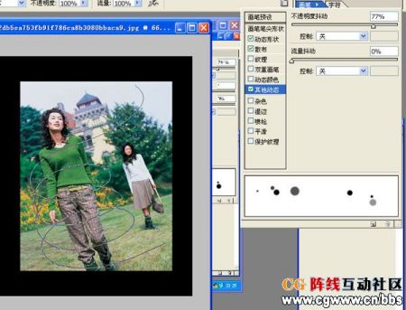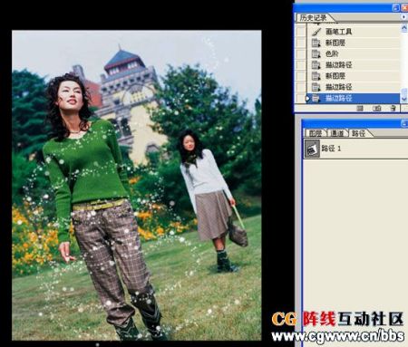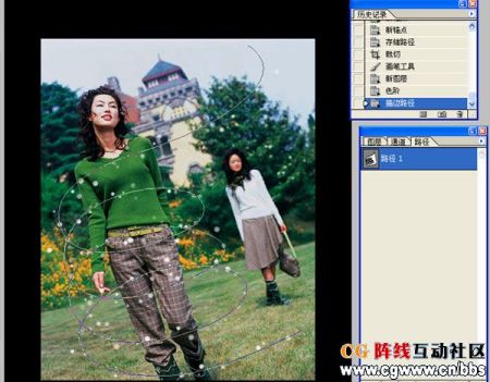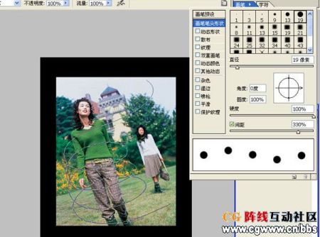 6、新建一层,用刚刚那个路径以及上面定义的画笔描边。
