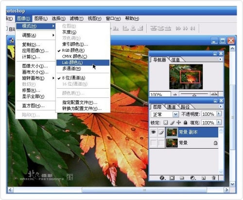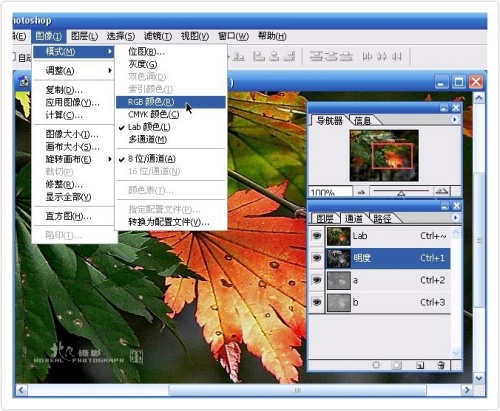 第二步.打开【图像】菜单,选【模式】中的lab颜色;蹦出对话框点“不合并”。