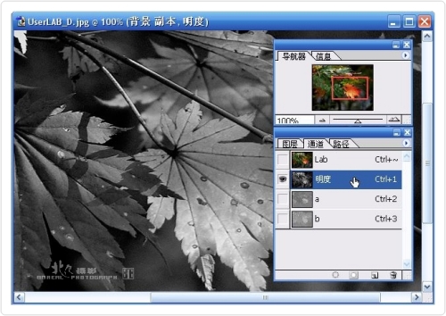 方法二:使用LAB明度通道