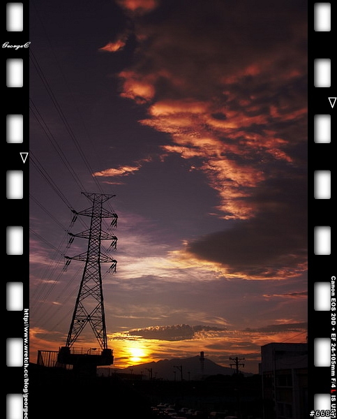 这张是小弟前些日子在五一劳动节难得出现的夕阳下所拍的照片。虽然说EF 24-105mm F/4 L IS所照出的颜色浓艳度是不会输给EF 24-70mm F/2.8 L的,但是真的照得出上面这张相片吗?