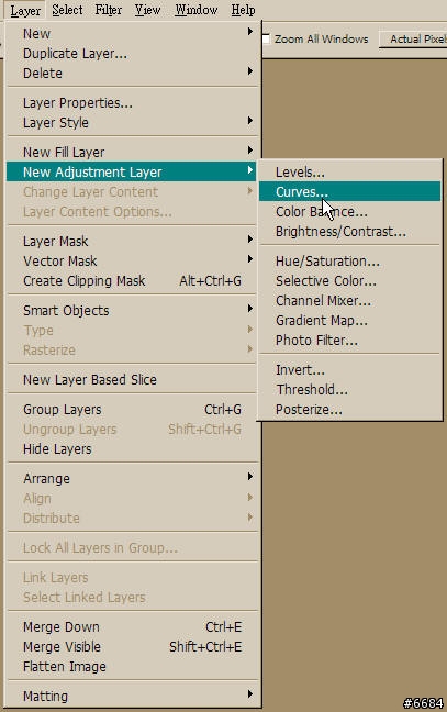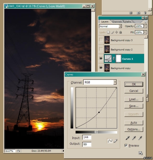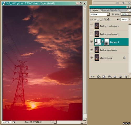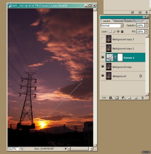 在Layer选单中选定curves该选项,我们来稍微调整一下这个图层的曲线。