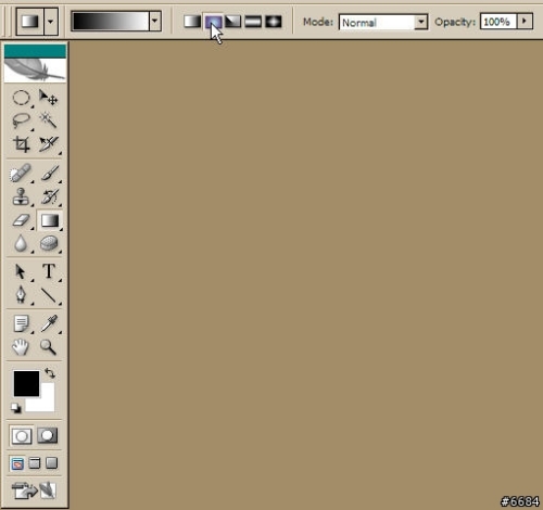 然后选定渐层工具,在上面的渐层工具栏选择由中间到周围放射状的渐层方式。