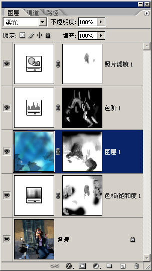3.新建图层,并将新图层的图层混合模式改为:柔光,使用颜色轻重不一的蓝色进行绘制
