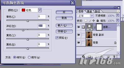 首先,我们把背景层拖到图层面板右下角的“新建图层”处,复制一个背景图层,然后,打开“创建新的填充或调整图层”中间的“可选颜色选项”,如图1所示: