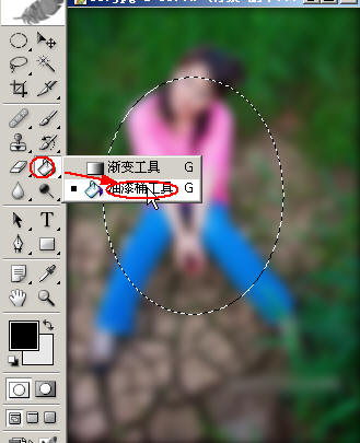 使用油漆桶工具对椭圆区域进行填充: