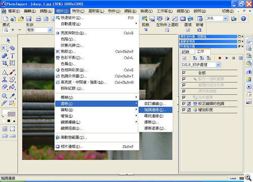 Photoimpact 10针对有许多几何形状的影像,「强调边缘」的指令,往往会比「清晰」的指令还要出色。