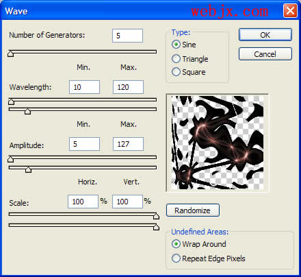 拼合图层,执行波浪滤镜: