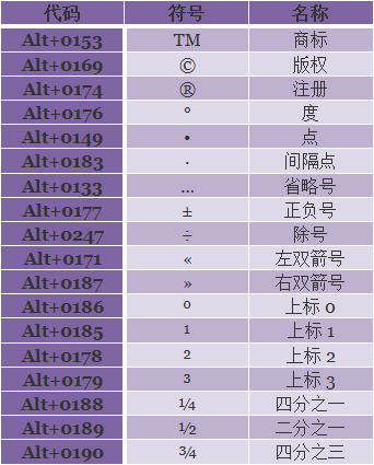 注意:要输入这些Alt代码时,只需要按住Alt键,接着用小键盘输入对应的数字,再松开Alt键,符号就会显示出来了。