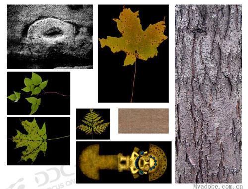 1:在制作此副图像之前,先准备了一些树叶和纹理的素材图片,当然有些也许最后用不上的。(如图1)