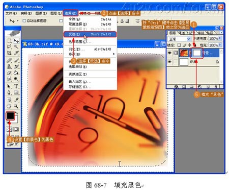 (5)填充黑色。按下 Ctrl 键的同时点击【图层蒙版缩览图】,将它变为选区,接着进行反选(快捷键 Ctrl Shift I ),然后把选区填充为黑色,如图 68-7 所示。