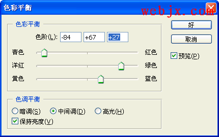 然后调整色彩平衡,喜欢什么颜色就调什么颜色吧!