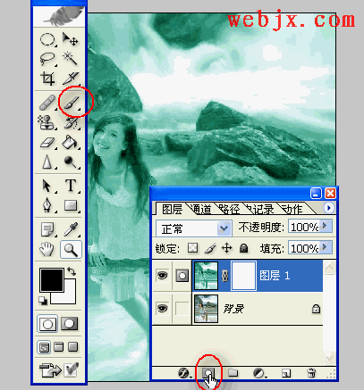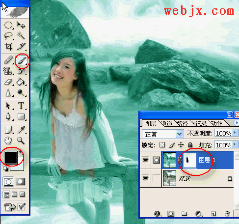 然后开始在人物上随意画,你就发现本来面目出现了!这就是蒙板的作用.