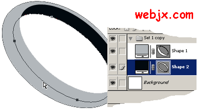到此指环的形状已经绘制出来了!下面我们开始应用图层样式达到3D效果,选择形状1图层
