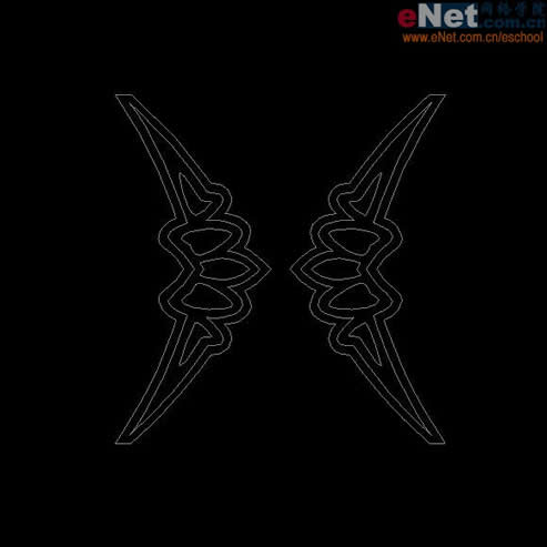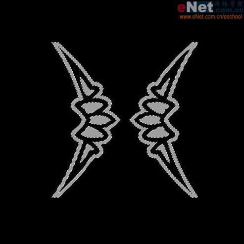 2.绘制饰品。这里我使用了自定义形状工具,画出了一对镰刀样式的路径,个人感觉还比较酷。如图2所示。