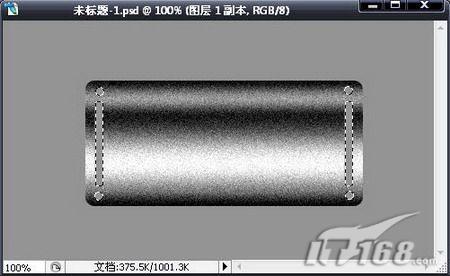 复制一个金属面板,将其总一个隐藏,对另一个进行操作。使用矩形选区工具和椭圆选区工具相结合在金属面板的两侧建立选区。并按下Delete将选中的区域删除。如图6所示。