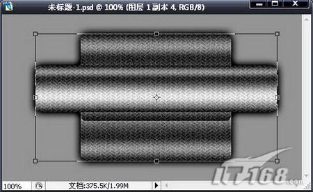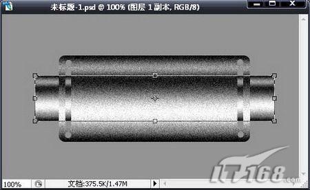 将刚才复制的面板显示出来,按下Ctrl T进行变形,调整为一个长条状的形态,并放置于金属面板得下方。如图7所示。