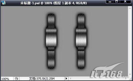 将面板下方的部件两个图层合并为一个图层,并复制一个将其变形。如图14所示。