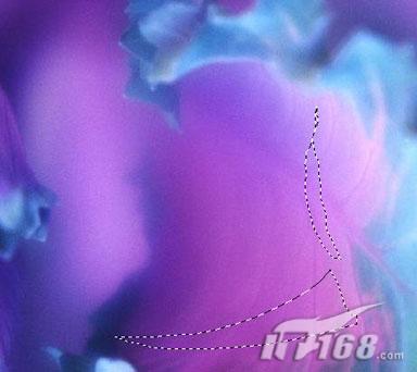 6、选择工具箱中的“磁性套索工具”,沿着上衣里面一层的轮廓进行勾勒,形成选区,如图06所示。