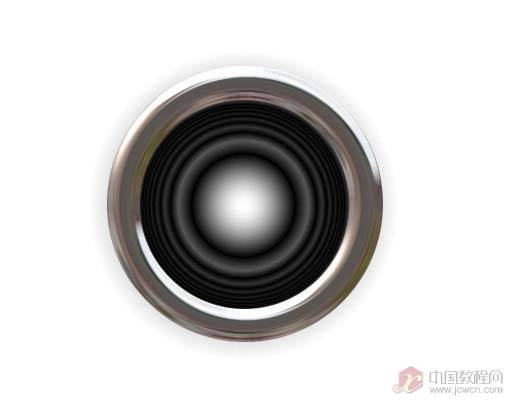 复制一个抠出的喇叭,用椭圆选择工具选取中间黑色的部分, delete 键删除。这一步用来制作盆托。对其效果的处理大家可自由发挥,可用图层样式,也可用铬合金滤镜。制作完后还可加上螺钉。图6。