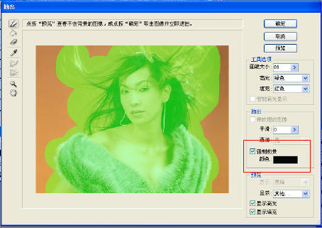 1、 首先我们打开图片,复制三层背景,执行抽出滤镜,分别强制前景,颜色定为头发的主色(棕——选择和背景色有较大差异的深棕色)、黑、白。(为防止修理时搞错,可分别命名)