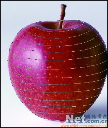 23、打开“路径”面板,单击其下方的“描边路径”,用设置的笔头描绘路径,然后在灰色区单击,将路径隐藏,用“橡皮”工具将描绘的下方檫除,效果如图17所示。